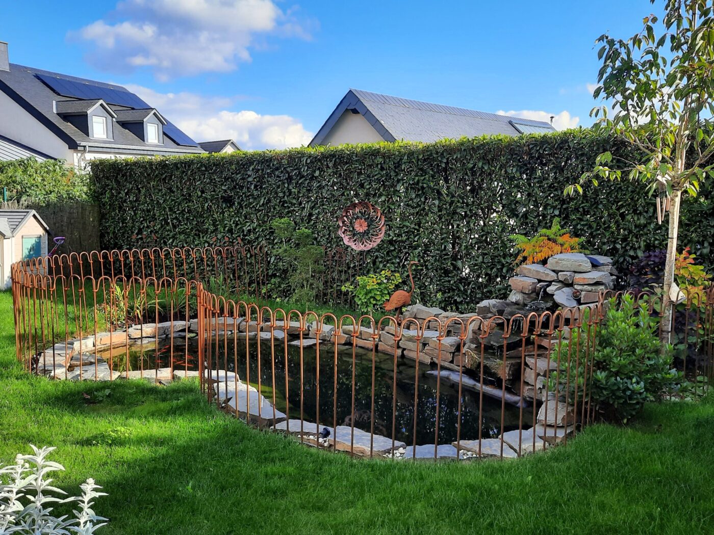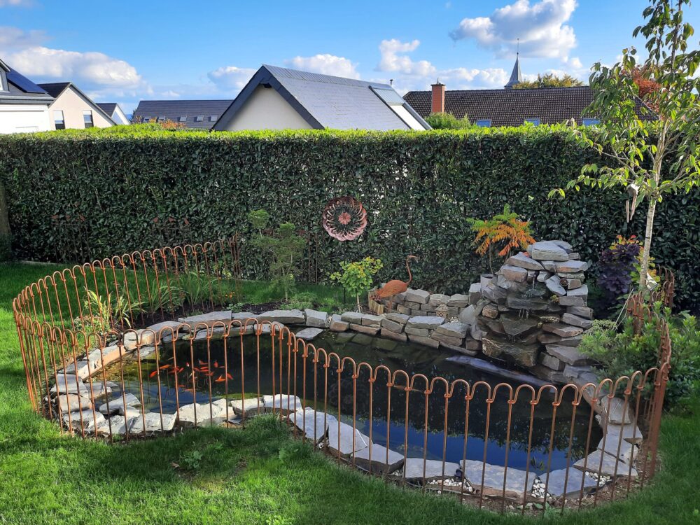 Même dans la finition non traitée brute (rouillée) et sans entretien, la clôture du bassin sécurise votre étang de jardin de manière fiable et stable pendant des années. La plupart des clients commandent la clôture étang light-125-brut et la laissent rouiller naturellement.