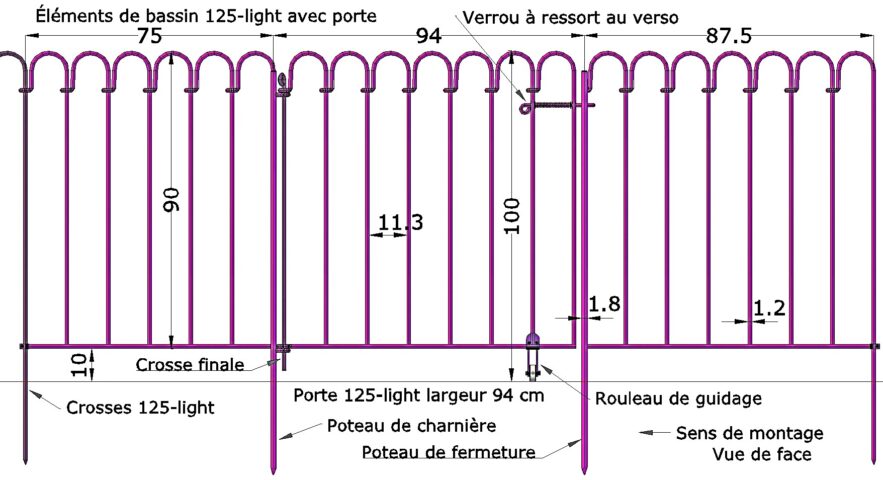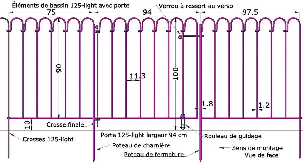 Si vous désirez installer une porte sur ou entre vos éléments de bassin, vous devez le spécifier dans votre commande afin que nous puissions souder les poteaux aux bons éléments.