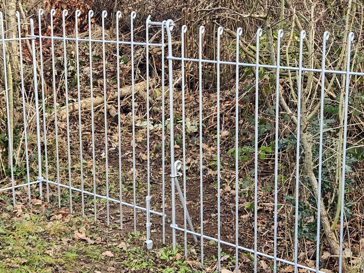 La traverse de soutien convient à toutes les hauteurs de clôture de 80 à 195 cm. Elle est enfoncée dans le sol à une distance d’environ 20 cm de la clôture ou de la barre de liaison. Elle doit être enfoncée suffisamment profondément pour que l’œillet inférieur soit complètement enfoncé dans le sol. La traverse peut ainsi s’ancrer dans le sol et conférer à la clôture ou au poteau une stabilité accrue et durable.