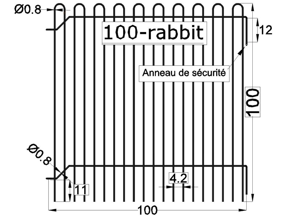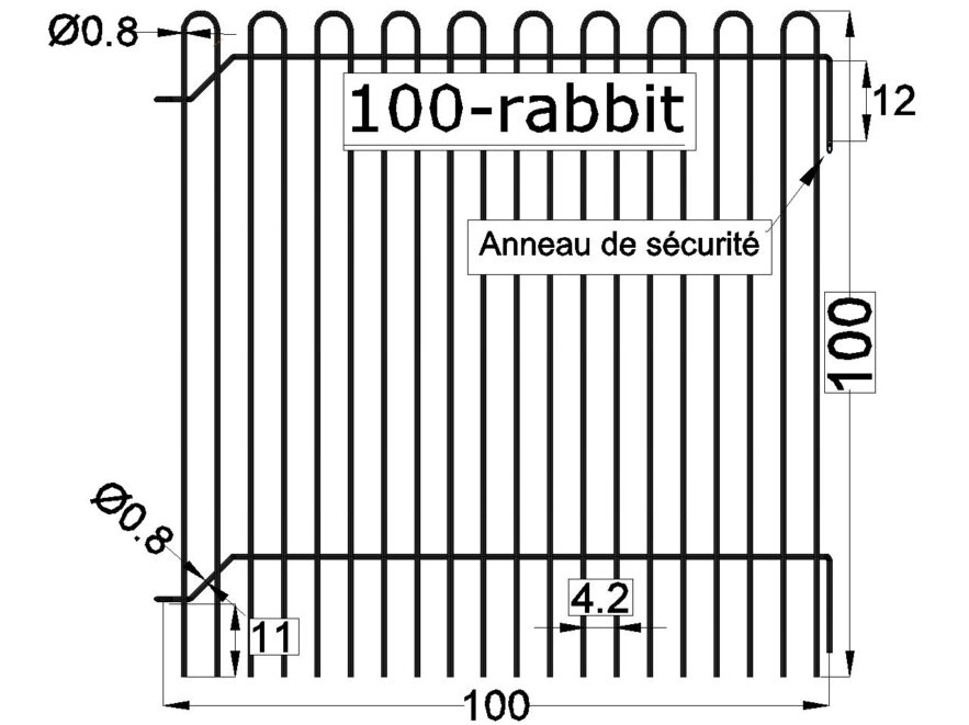 La largeur des éléments de clôture rabbit est toujours de 100 cm.