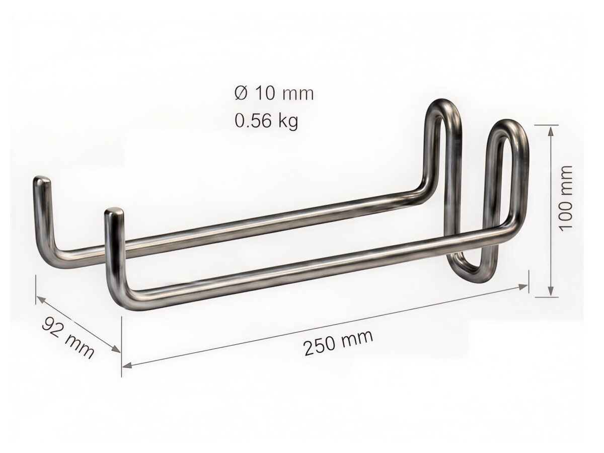 Nous pouvons fabriquer des supports spéciaux selon vos souhaits et vos dimensions. Au lieu d’un fil de 10 mm, ce support peut également être fabriqué en fil de 6, 8 ou 12 mm. Pour votre demande individuelle, veuillez utiliser notre formulaire de demande ou envoyer un e-mail à info@melabel.be.