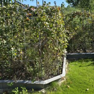 J’avais déjà commandé un treillis chez vous il y a quelques années. Il est toujours solidement ancré dans le sol, n’a pas bougé ni affaissé et ne présente aucun signe de corrosion. Il sert de support à un croisement très vigoureux et proliférant entre la mûre et la framboise (nom de la variété : Dorman Red).