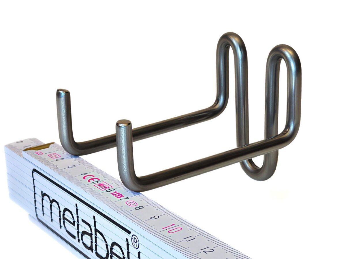 Wir können für Sie spezielle Halterungen nach Ihren Wünschen und Maßen anfertigen. Anstelle von 6 mm Draht kann diese Halterung auch aus 8 , 10 oder 12 mm Draht hergestellt werden. Für Ihre individuelle Anfrage nutzen Sie bitte unser Anfrageformular oder senden Sie eine E-Mail an info@melabel.be.