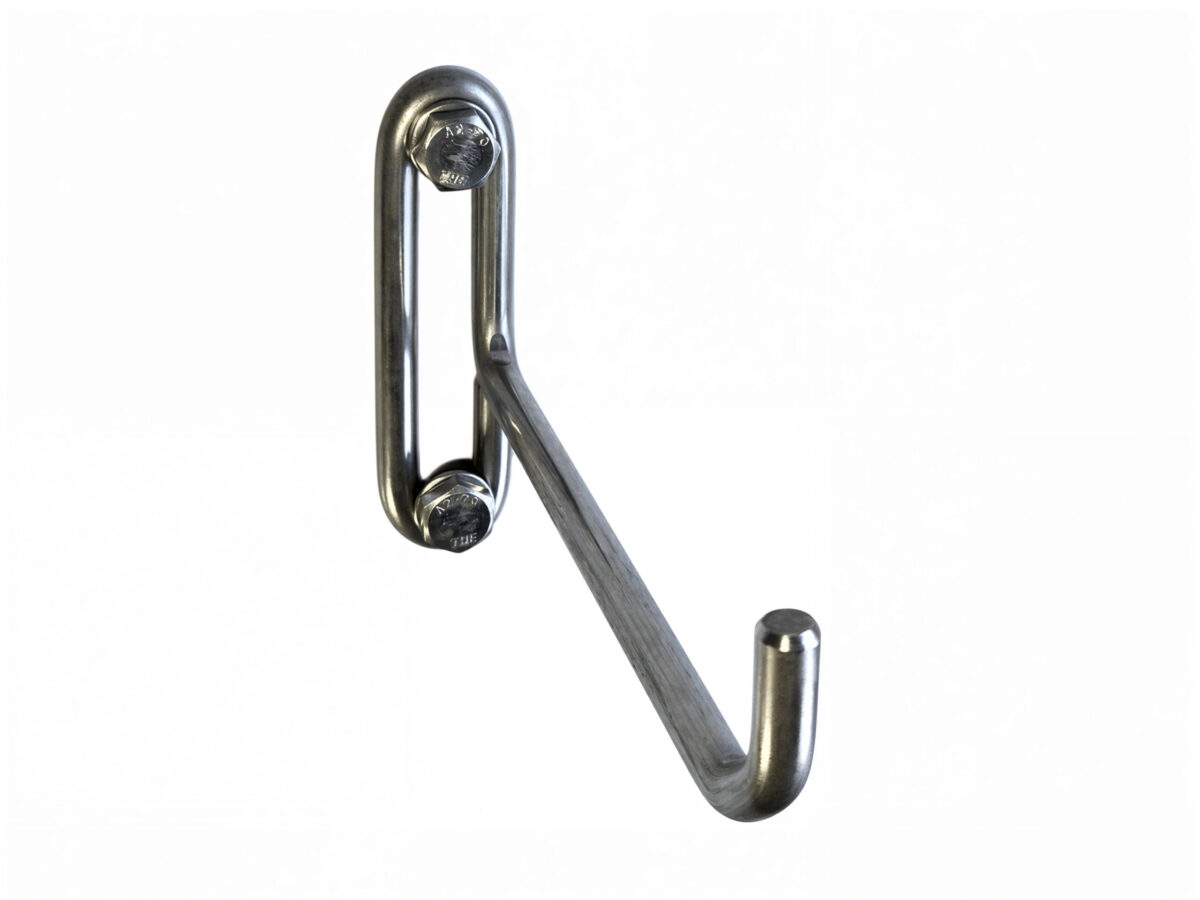 Der Wandhaken wird einfach an die Wand geschraubt und hat zwei 11 mm breite Befestigungslöcher für Edelstahlschrauben Ø 10 mm.