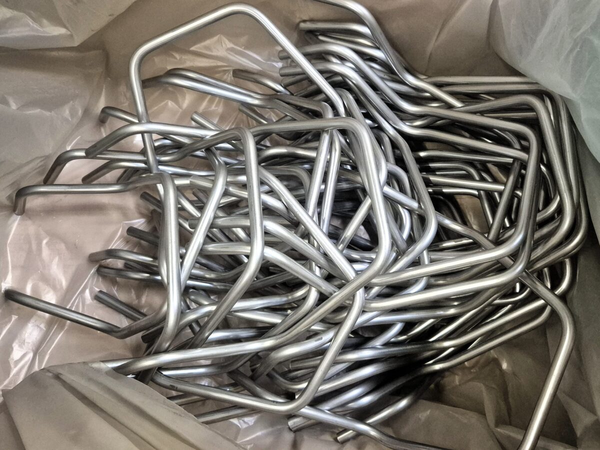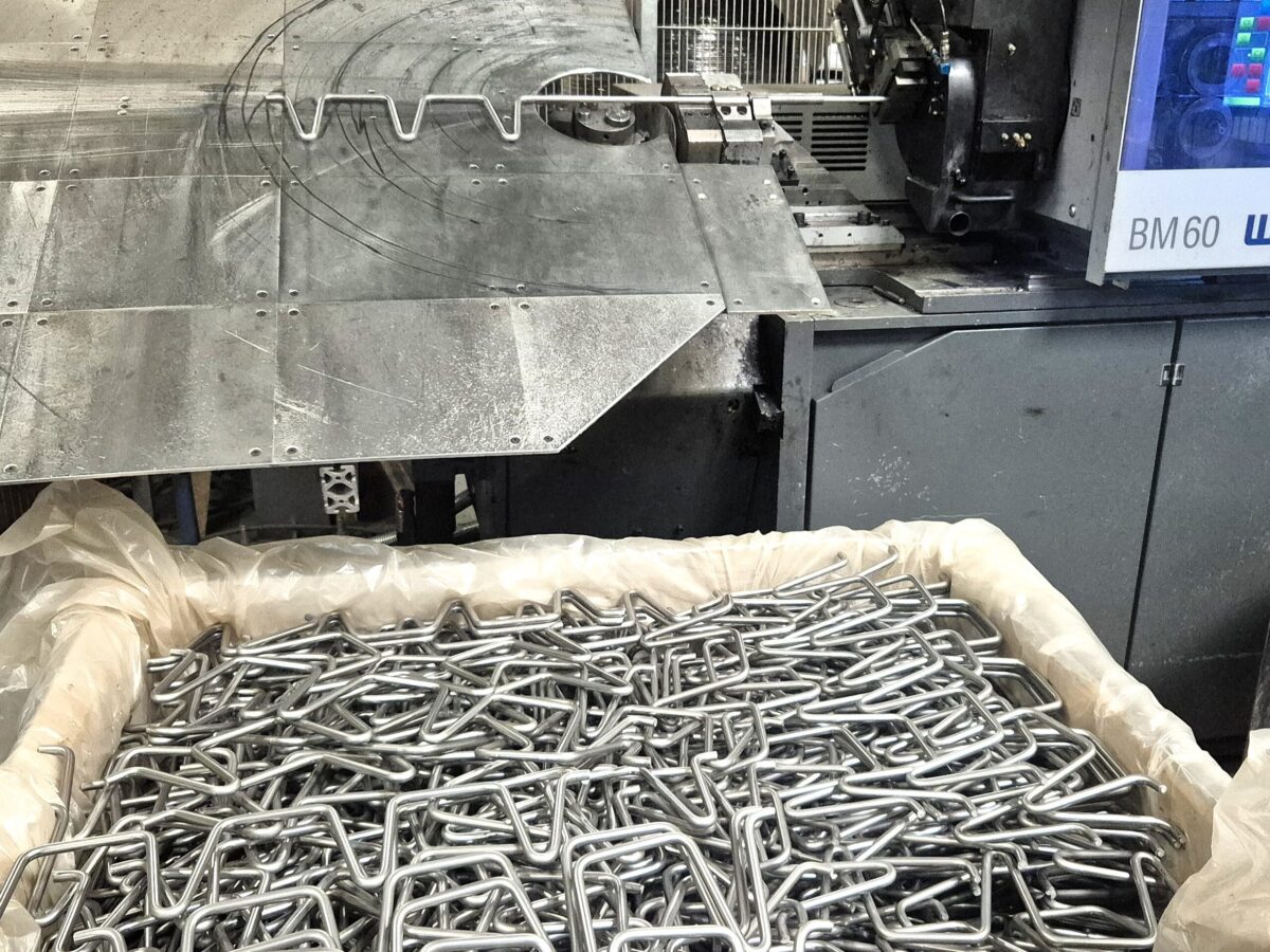 We verwerken staaldraad en roestvrij staaldraad in diameters van 6,0, 8,0, 10,0 en 12,0 mm. De draad wordt rechtgetrokken, meerdere keren gebogen, gedeeltelijk afgeschuind en geknipt met behulp van de CNC-buigmachine. We kunnen gebogen draadonderdelen produceren zoals beugels, spiralen, ringen, haken enz. met radii vanaf 0,5 x draaddiameter. Het knippen van recht rond draad met een lichte afschuining is ook mogelijk.