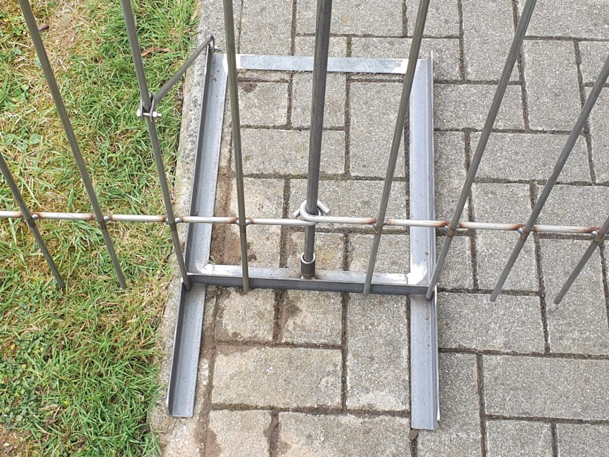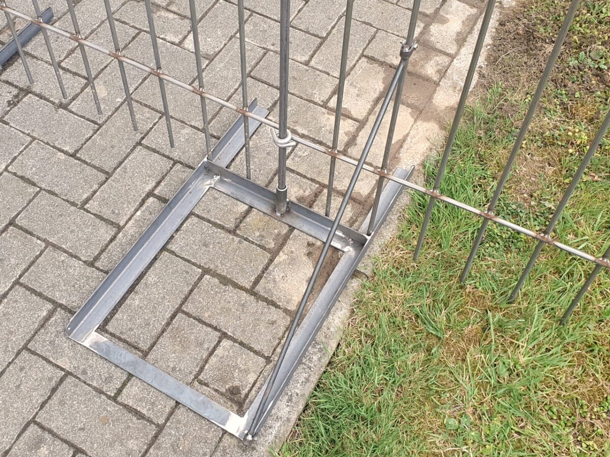 Bij bestelling van anneau-hekwerkelementen met grondsteunen vervangen wij, afhankelijk van het aantal voetstukken, de verbindingsstangen om in te slaan door kortere verbindingsstangen, afhankelijk van de hoogte van het hek.