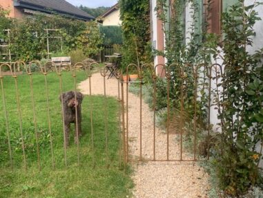 De light deur is 94 cm breed (van middenstijl tot middenstijl), kan eenvoudig worden verbonden met de light hekpalen en opent in beide richtingen. De deur is 90 cm hoog. De afstand tot de grond is 10 cm (100 cm installatiehoogte).
