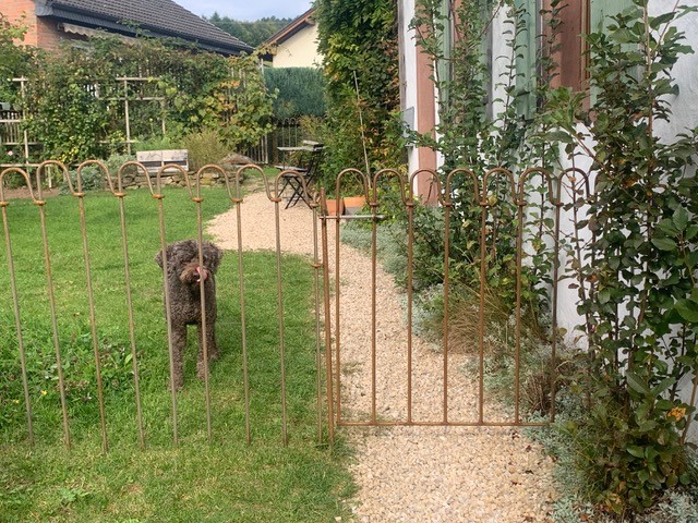 De light deur is 94 cm breed (van middenstijl tot middenstijl), kan eenvoudig worden verbonden met de light hekpalen en opent in beide richtingen. De deur is 90 cm hoog. De afstand tot de grond is 10 cm (100 cm installatiehoogte).