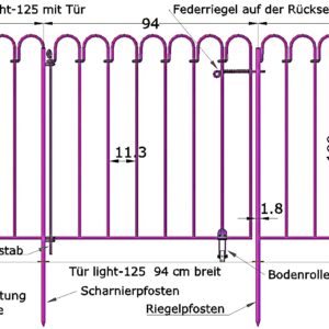 De hoogte van een insteekelement-light-125 vanaf de bovenrand van de bovenrail tot de onderrand van de onderrail is 90 cm.