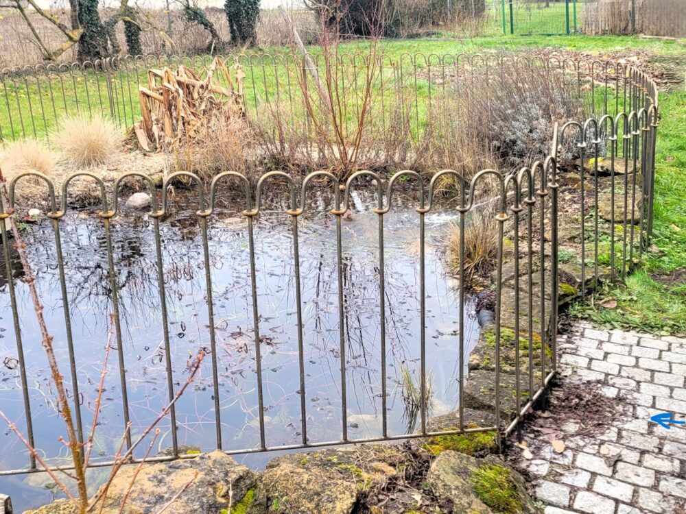 De lichte vijverhekbalken kunnen aan de buitenste uiteinden worden bevestigd.