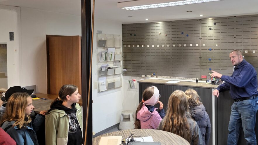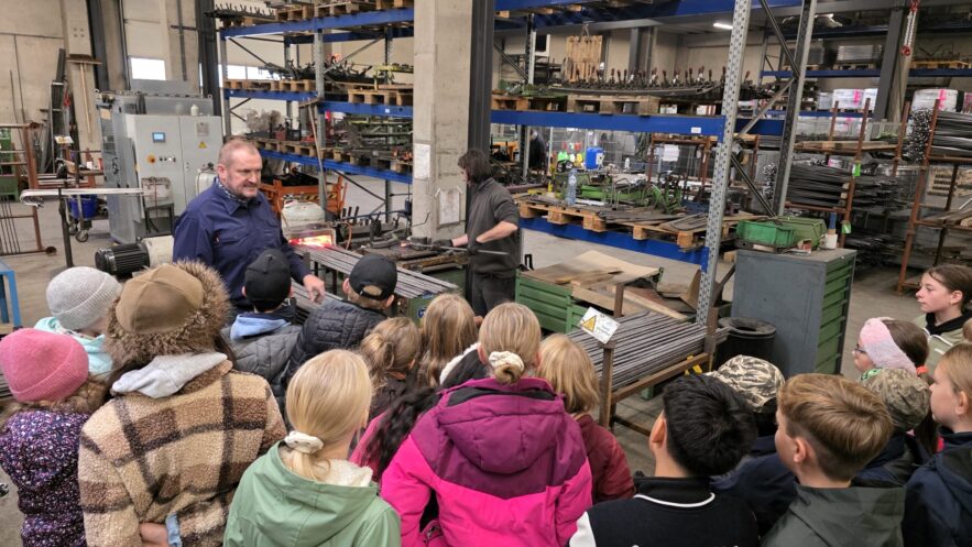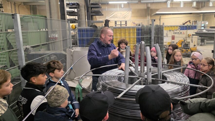 Schoolklas uit Hauset op bezoek bij de hekwerkfabriek