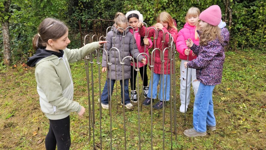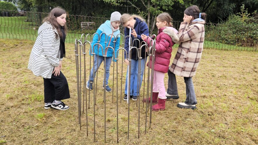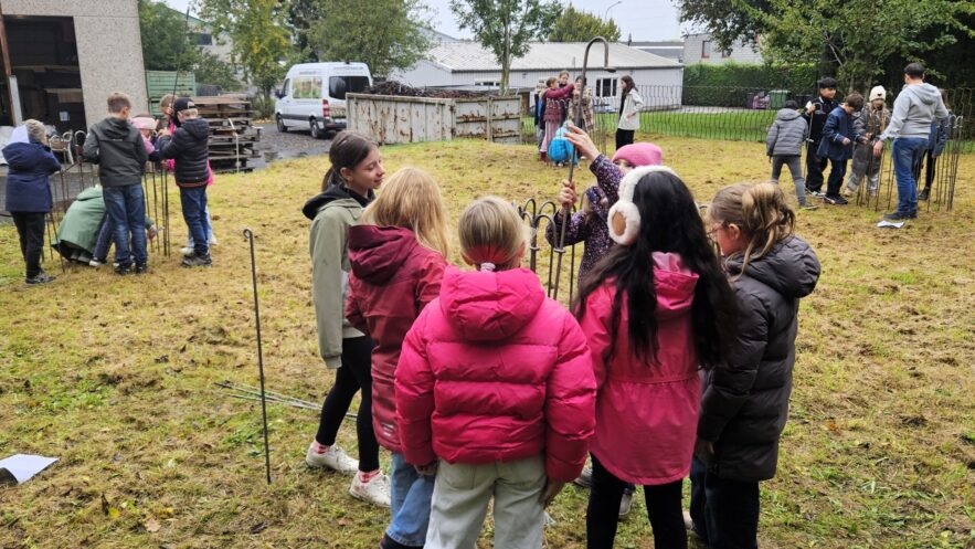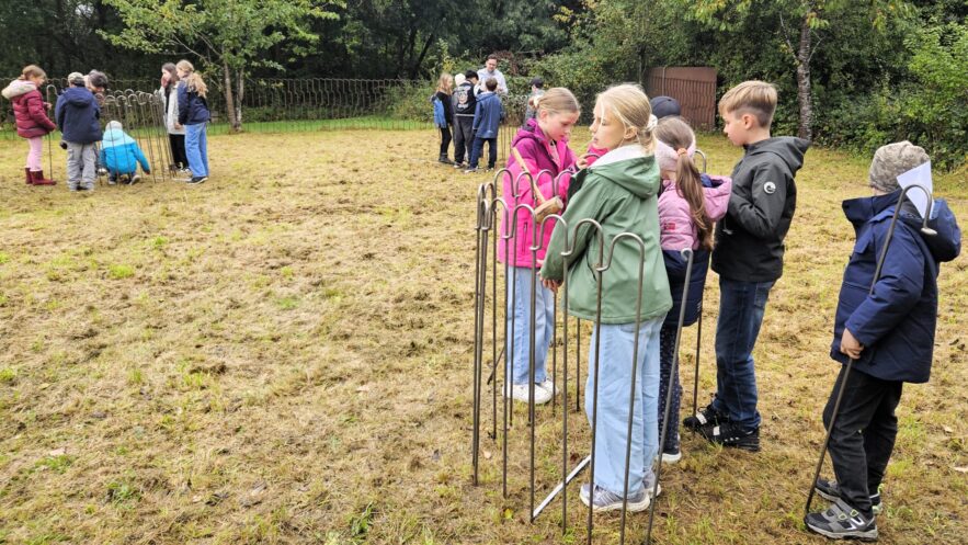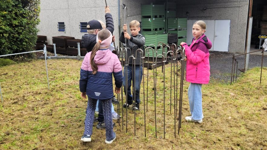 Met veel enthousiasme en concentratie bouwden de kinderen drie meter lange hekwerkelementen – recht, rond en met de juiste diameter. Het was indrukwekkend om te zien hoe zorgvuldig en nauwkeurig ze te werk gingen.