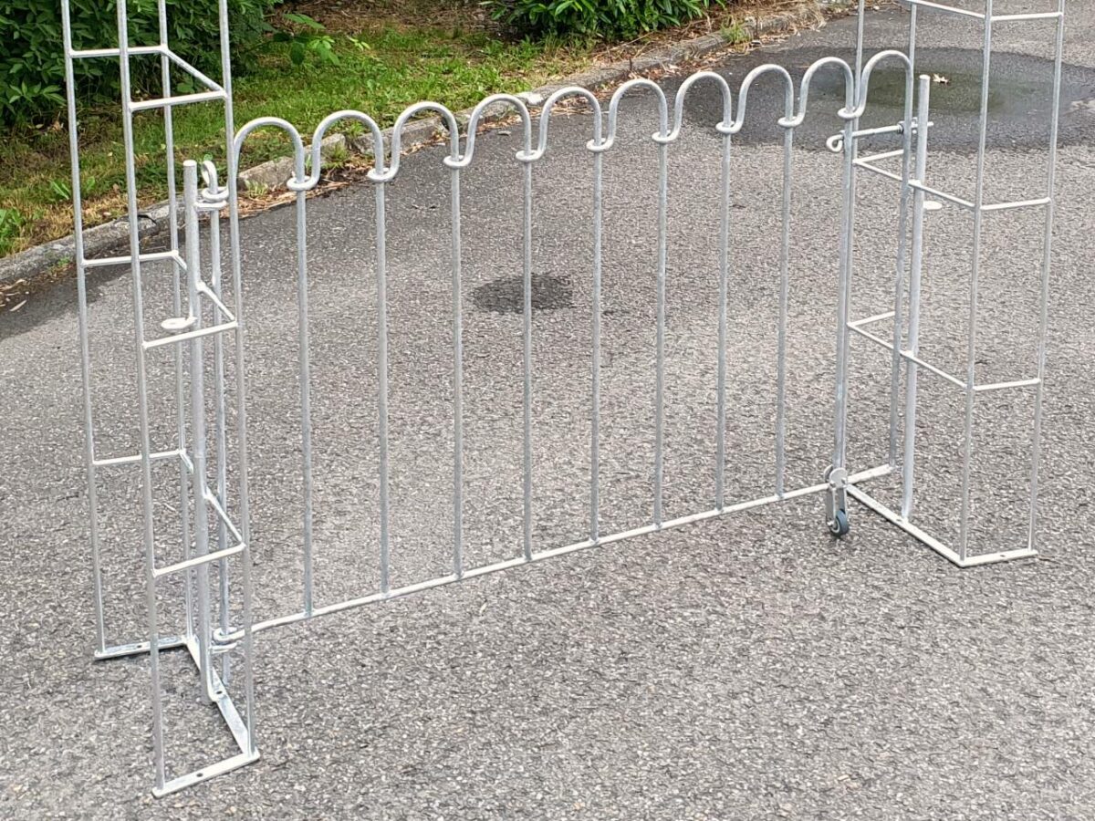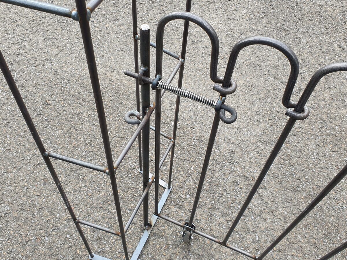 De deurposten worden stevig aan de rozenboog vastgelast. Aan de achterkant van de palen zit aan elke kant een oog voor de aansluiting van het hek.