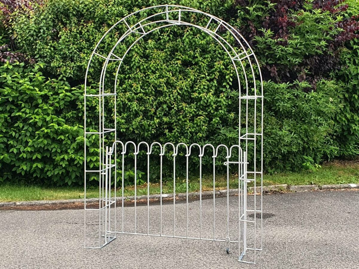 De deur is 125 cm breed. De doorgangsbreedte van de rozenboog is 128 cm.