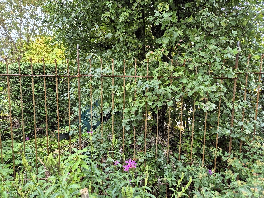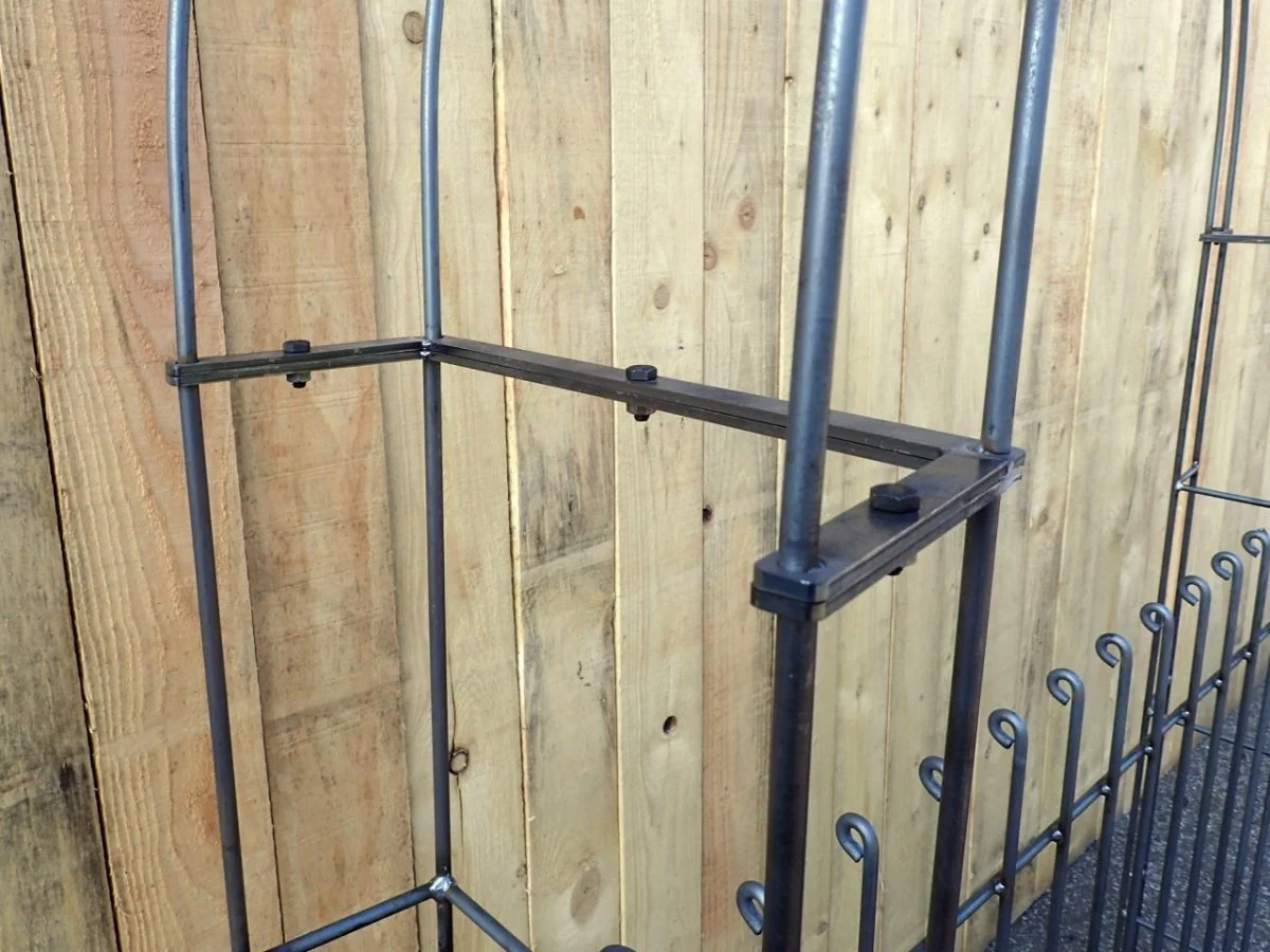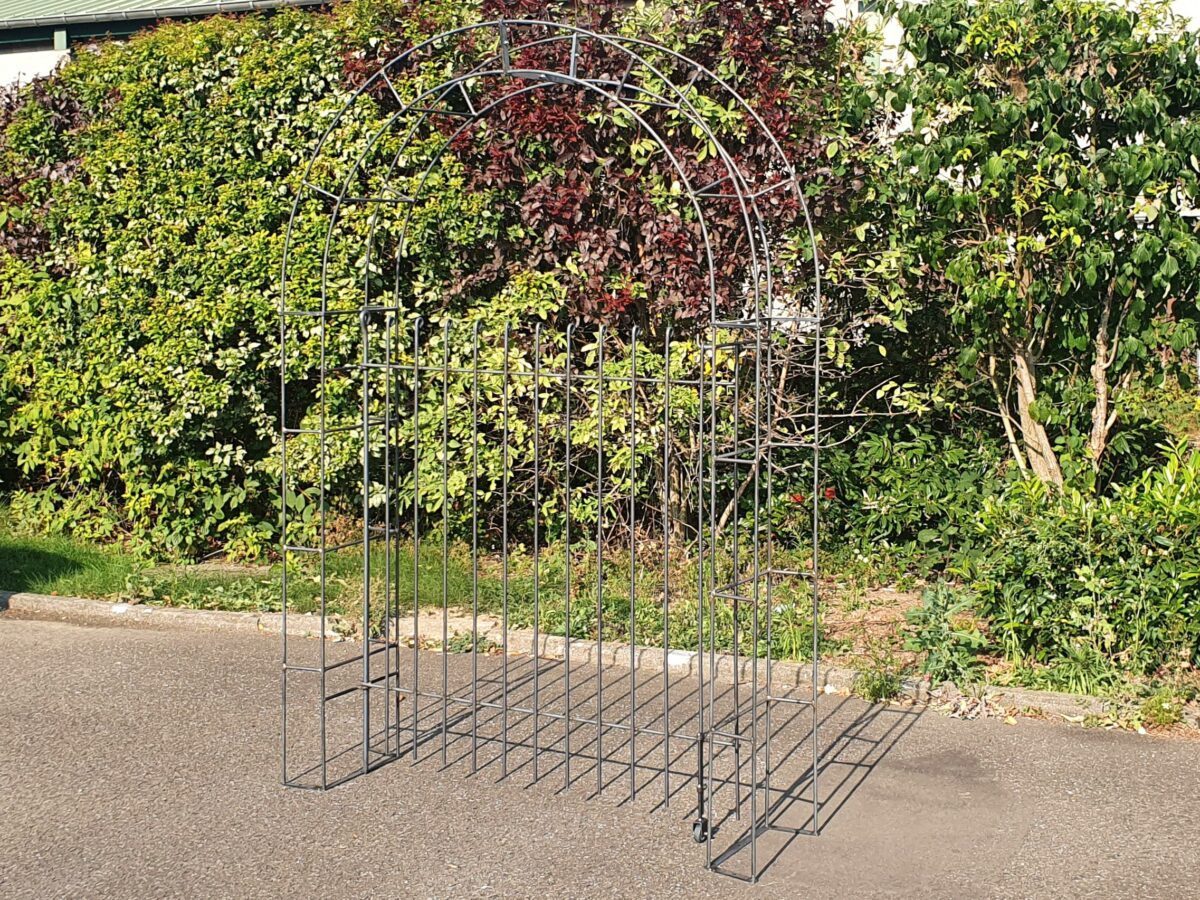 Rozenboog: rondstaal Ø 1,0 cm en platstaal 2×0,5 cm.