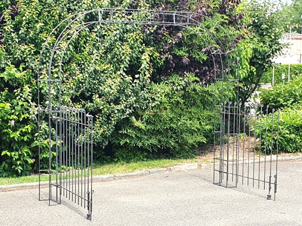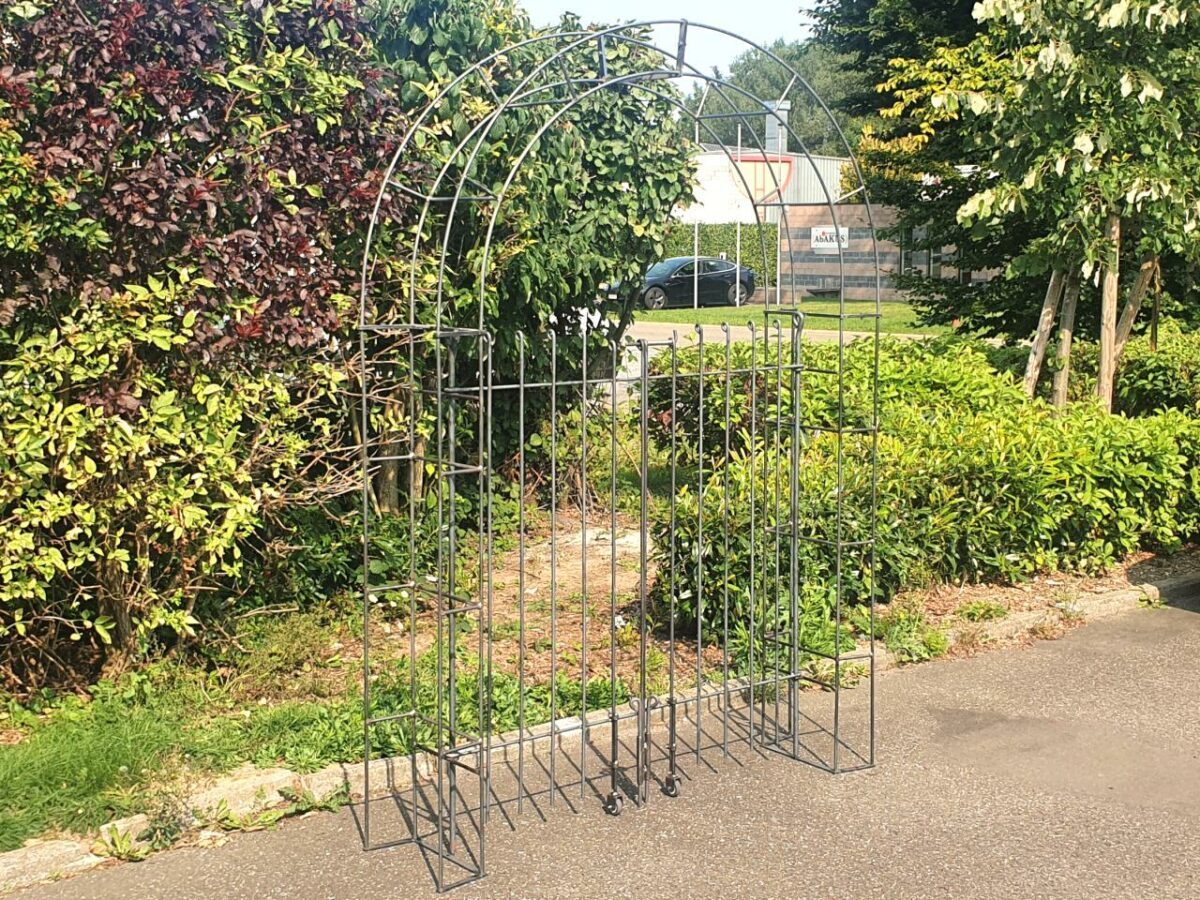 Belangrijk bij het bestellen is de formulering: rozenboog met dubbele poort anno (+ hoogte + breedte).