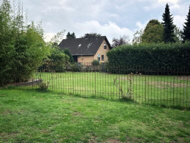 Wir haben einen Teil unseres Gartens in zwei Bereiche aufgeteilt. Der eine Bereich mit dem 1,7m hohen Zaun ist das Reich unseres Schäferhundes Leo. Der andere Bereich soll künftig für unsere und Tageskindern als Spielbereich dienen.Florian Z.
