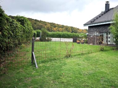 Was uns überrascht hat , war die schnelle Lieferung des Hundezauns. Natürlich war es kein Problem diese Elemente in den bereits bestehenden Zaun einzubauen. Die Zaunelemente integrieren sich, mit dem Rostbraun wunderbar in unsere Hecken und Buschlandschaft.Bronislaw K.