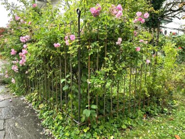 Der Aufbau ging schnell und -wörtlich- am Schnürchen. Der Zaun fügt sich gut in den Garten ein und Sichtachsen bleiben erhalten. Auch zu alten Gebäuden passt das rostige Eisen gut.Til C.