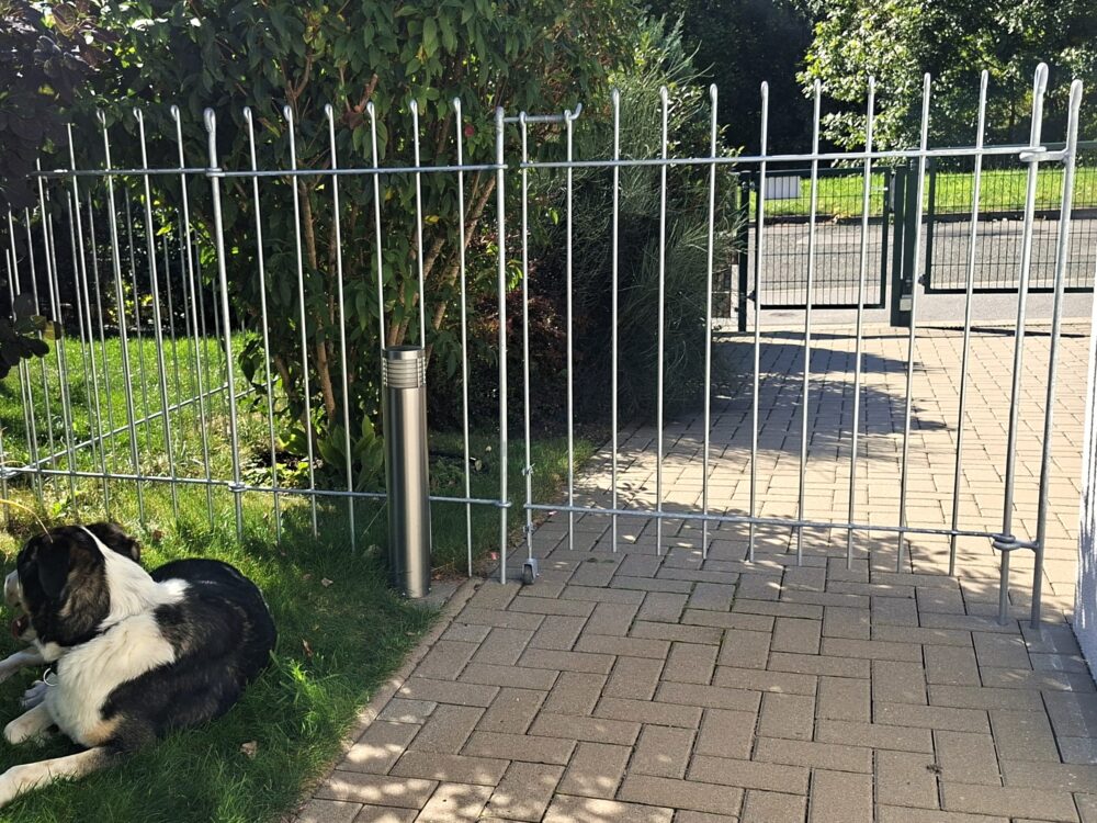 Was uns überrascht hat , war die schnelle Lieferung des Hundezauns. Natürlich war es kein Problem diese Elemente in den bereits bestehenden Zaun einzubauen. Die Zaunelemente integrieren sich, mit dem Rostbraun wunderbar in unsere Hecken und Buschlandschaft.Bronislaw K.