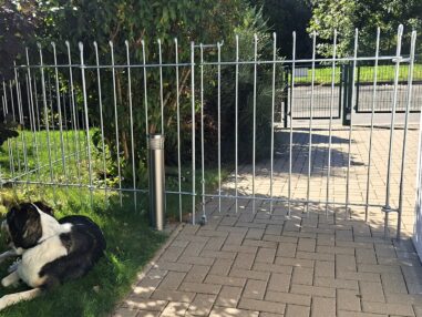 Vielen Dank für die schnelle Lieferung des Hundezaunes. Der Aufbau war problemlos und ging schneller als gedacht. Wir haben drei Zaunstrecken aufgebaut. Der Zaun passt optisch sehr gut in unseren Garten.Markus D.