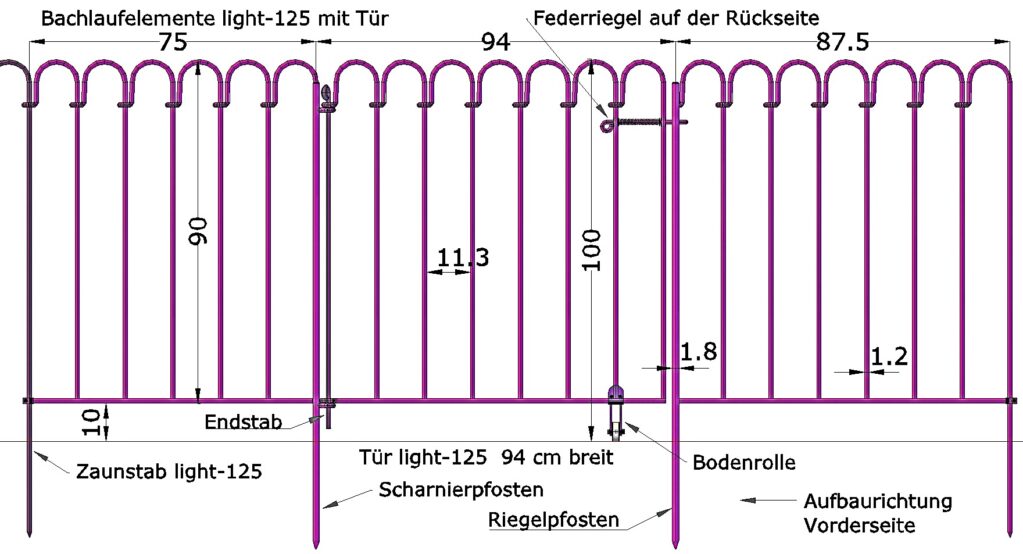Wenn Sie eine Tür an oder zwischen Ihren Bachlaufelementen montieren möchten müssen Sie das unbedingt bei Ihrer Bestellung angeben, damit wir die Pfosten an den richtigen Elementen anschweißen können .