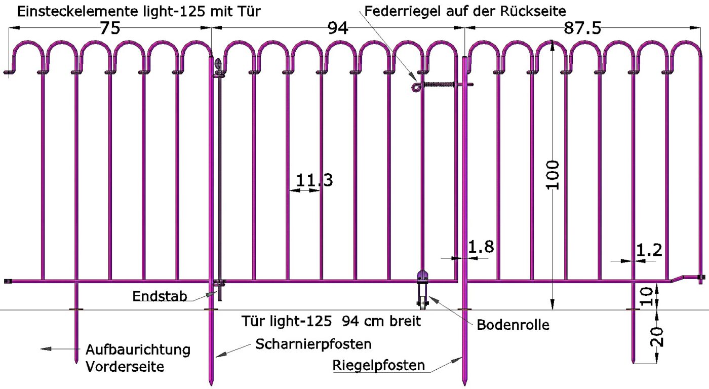 Wenn Sie eine Tür an oder zwischen Ihre Einsteckelemente montieren möchten, müssen Sie das unbedingt bei Ihrer Bestellung angeben, damit wir die Pfosten an den richtigen Elementen anschweißen können .