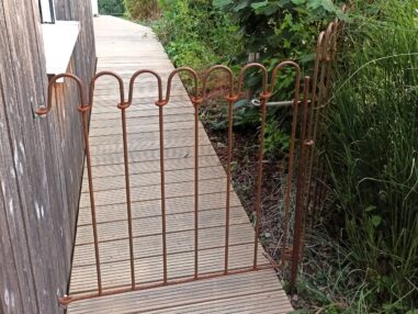 Material der Tür anneau: Rundstahl/Volleisen Ø 1,2 cm , die Pfosten aus Rundstahl/Volleisen Ø 1,8 cm.